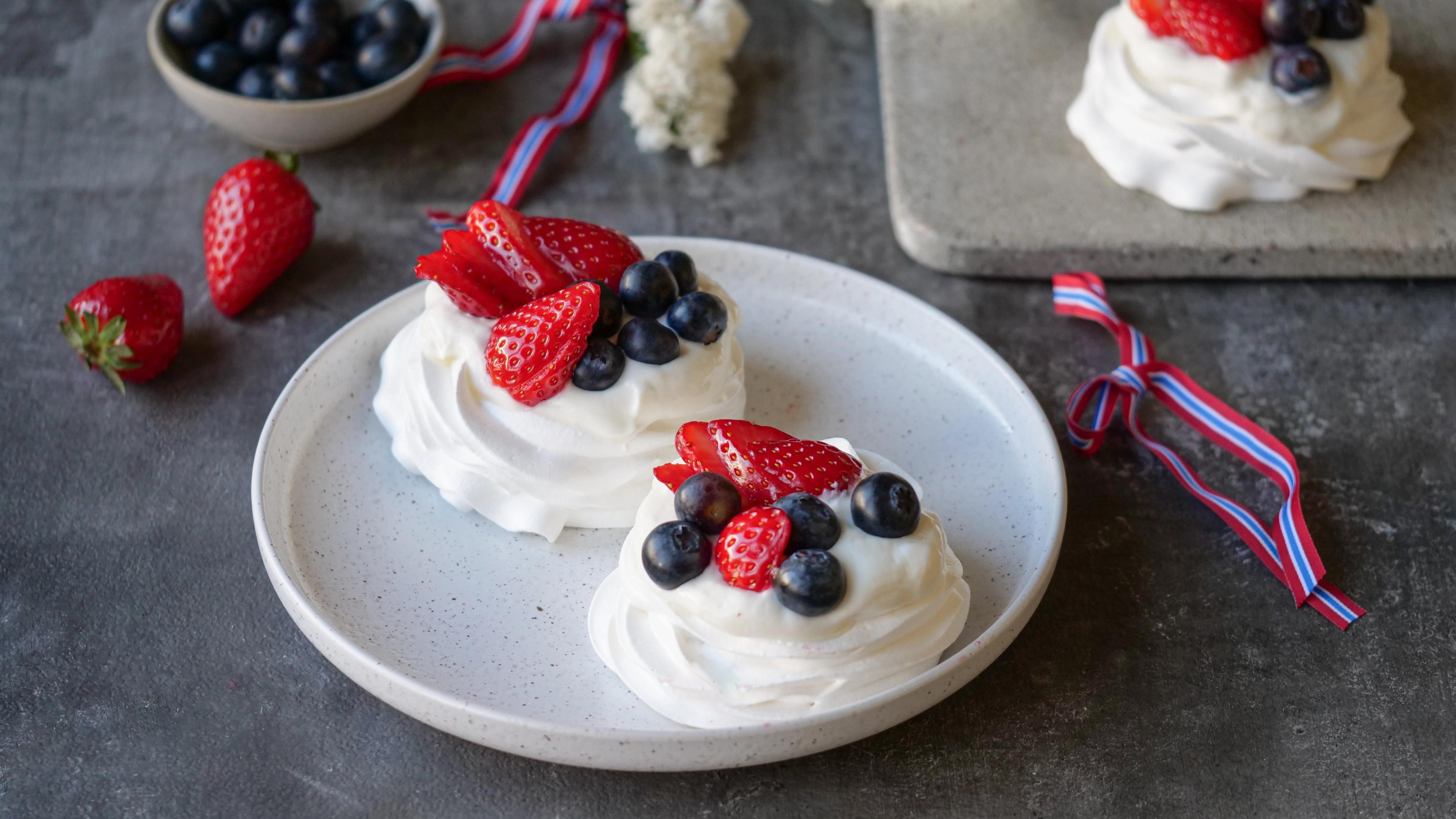 Ingenting passer bedre til 17. mai eller konfirmasjonen enn en søt og sprø Pavlova med vaniljekrem! Pavlova kan pyntes med det du liker best av frukt og friske bær. Bruk fantasien og prøv en ny vri. Eller forsøk en av våre fristende Pavlovavarianter.