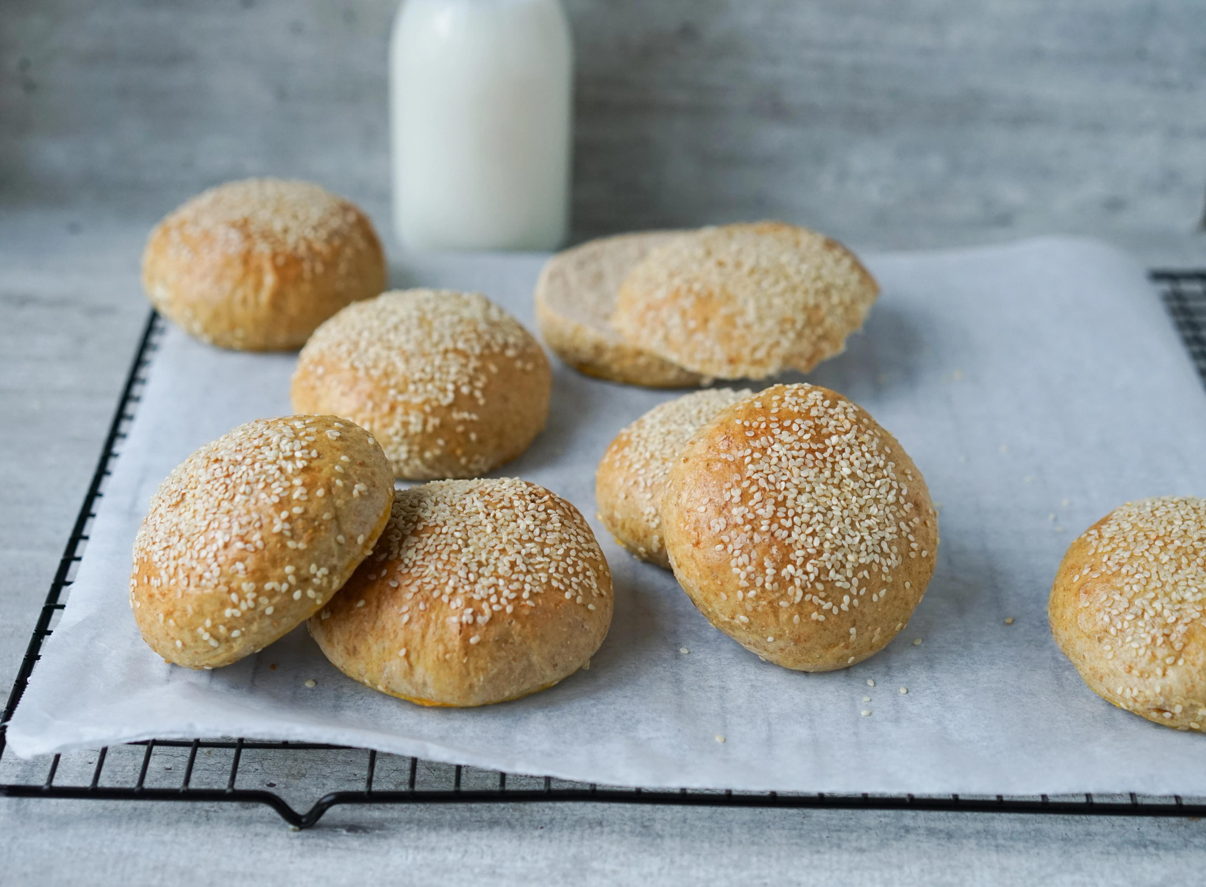 Grove og luftige burgerbrød.