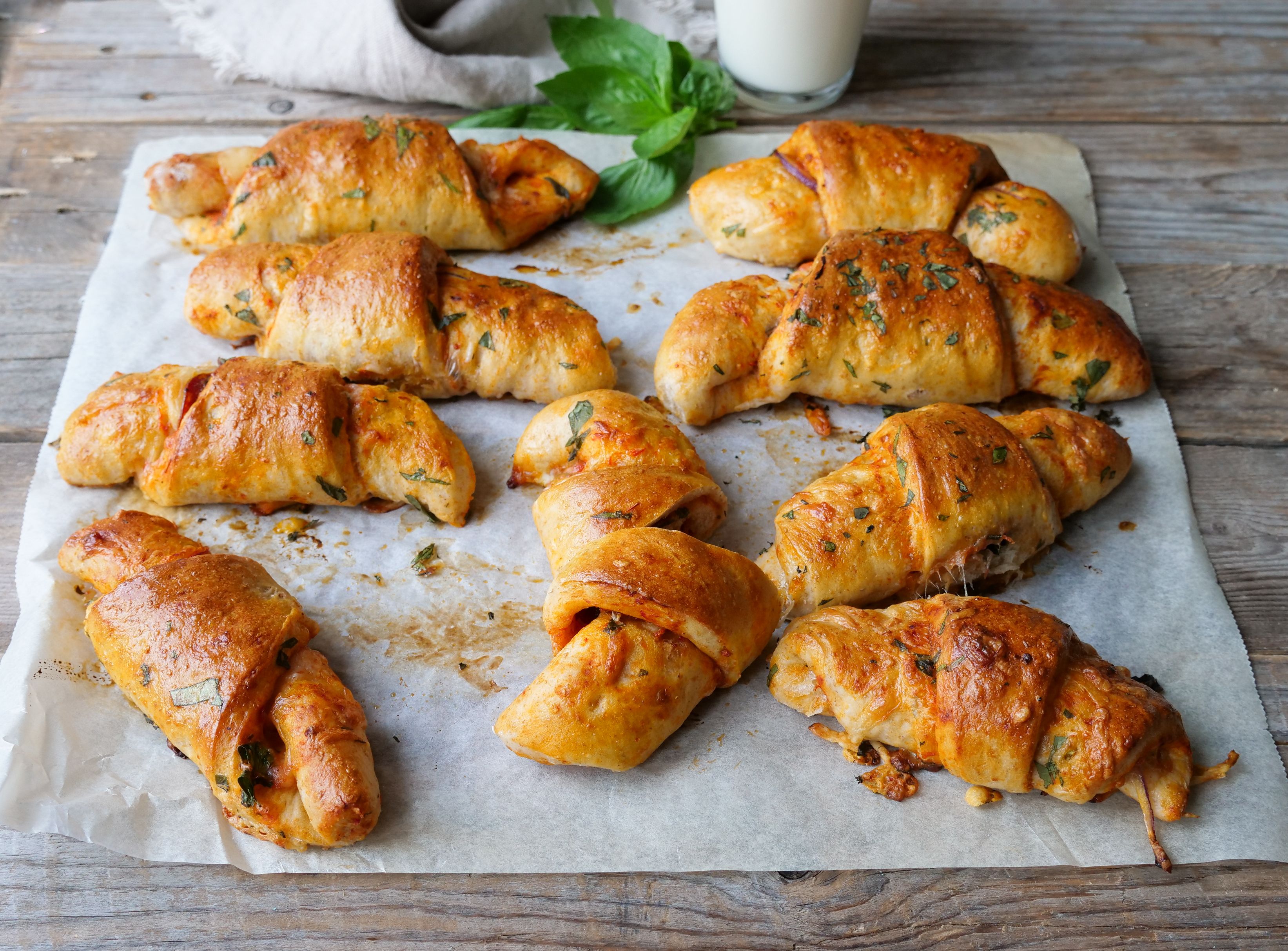 Deilige pizzahorn som passer perfekt i matpakka eller til kveldsmat.