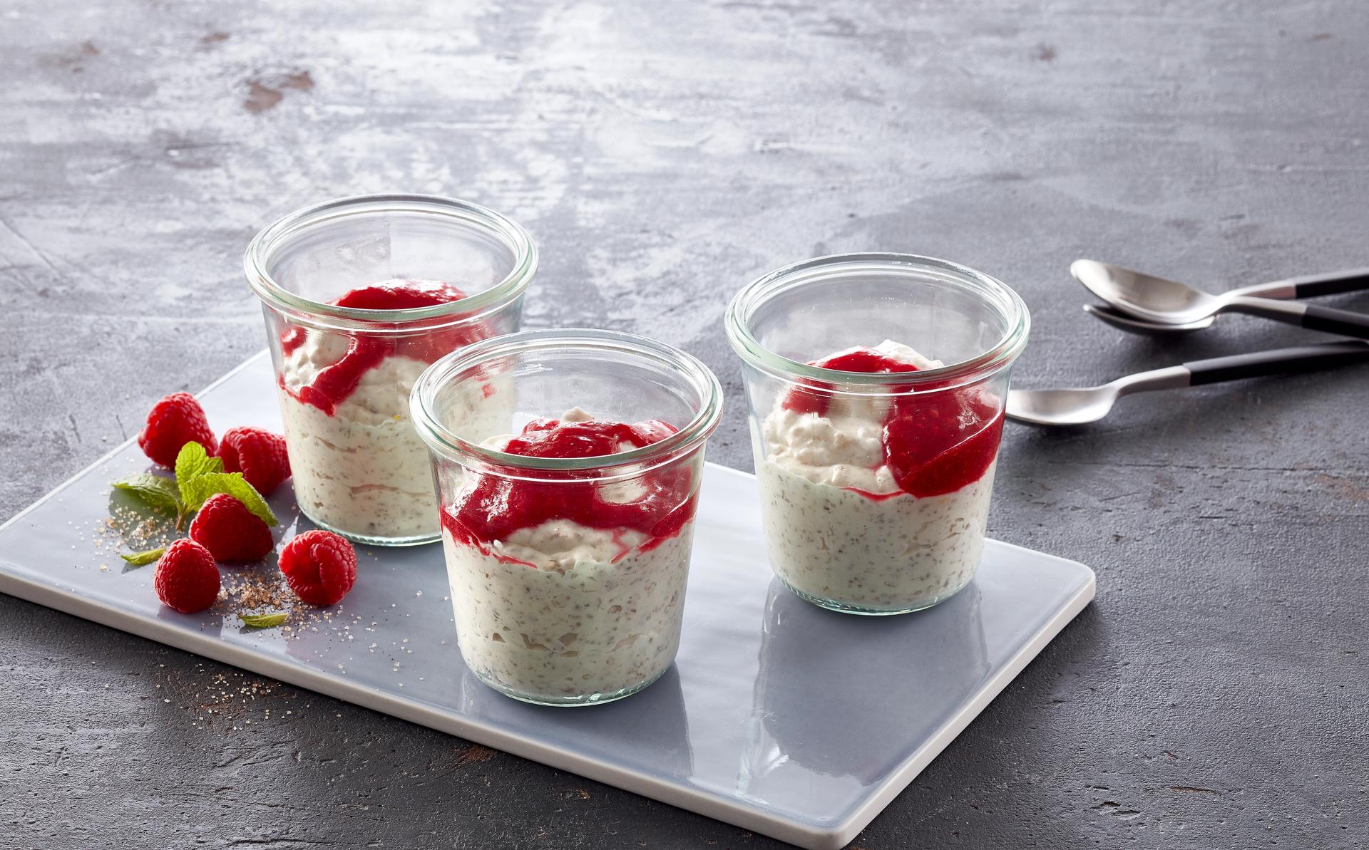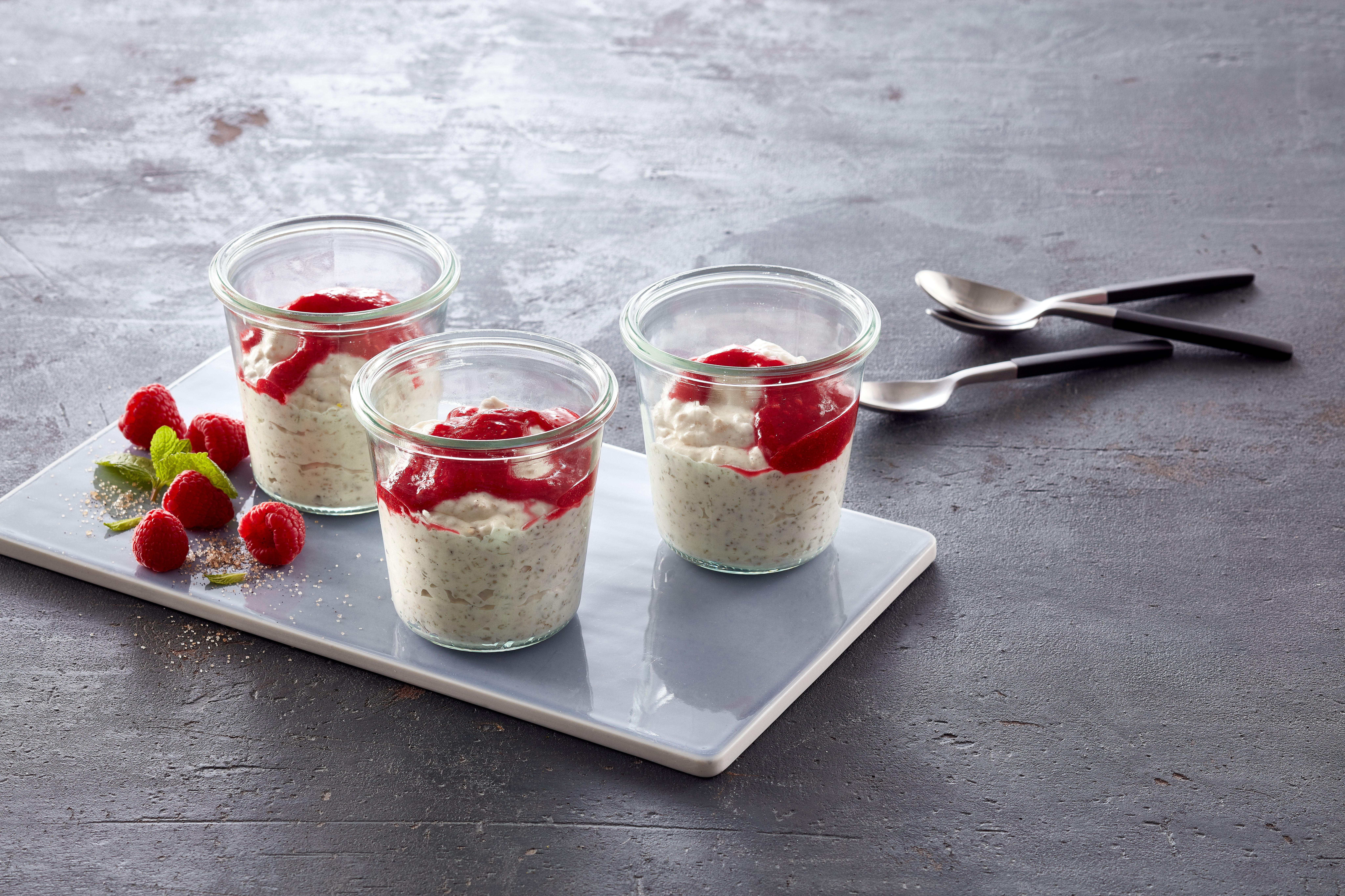 - Visp kremfløten til luftig krem og bland inn grøten.