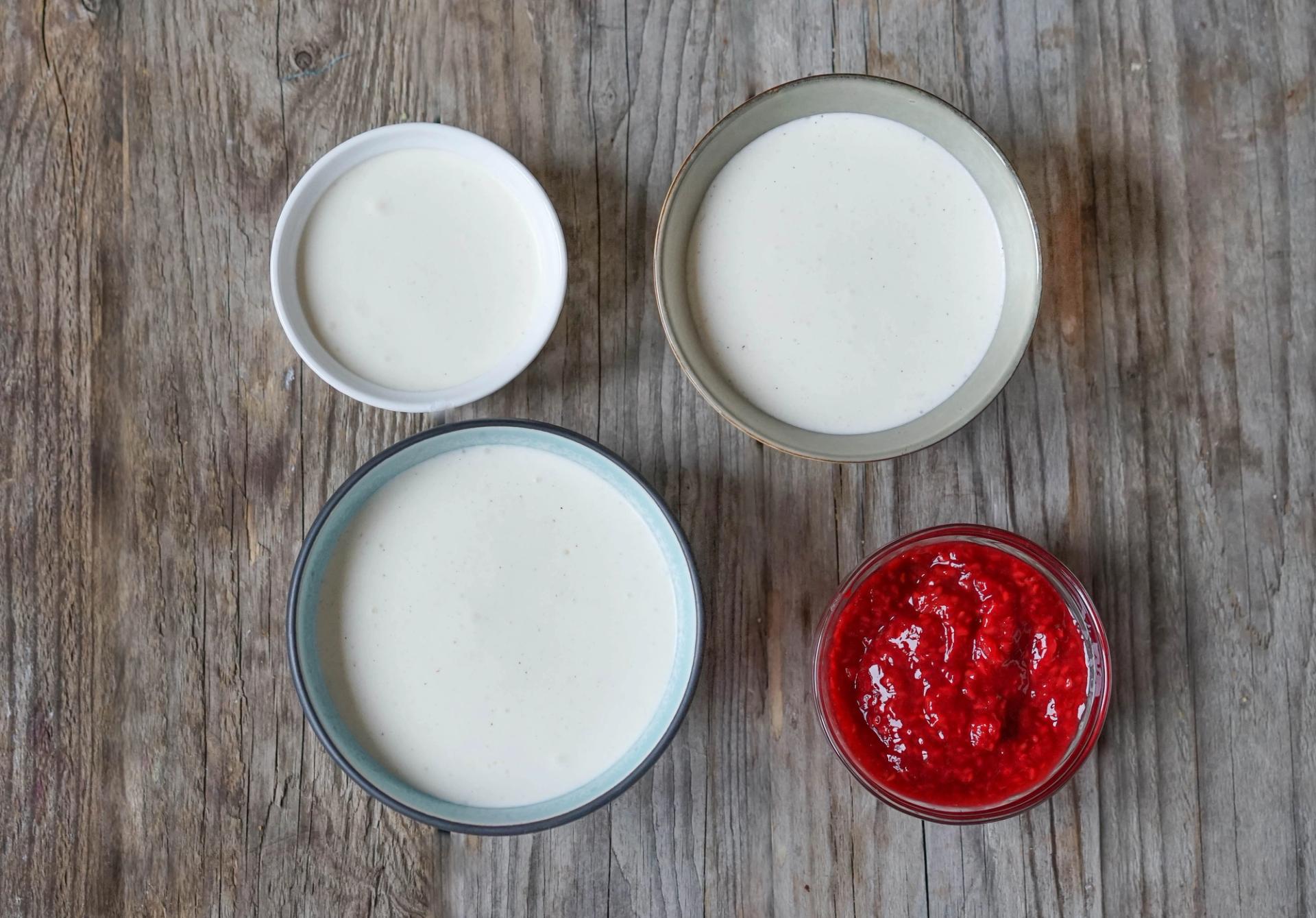 - Bland syrnet melk, sukker og vaniljesukker og visp det inn i kremen.