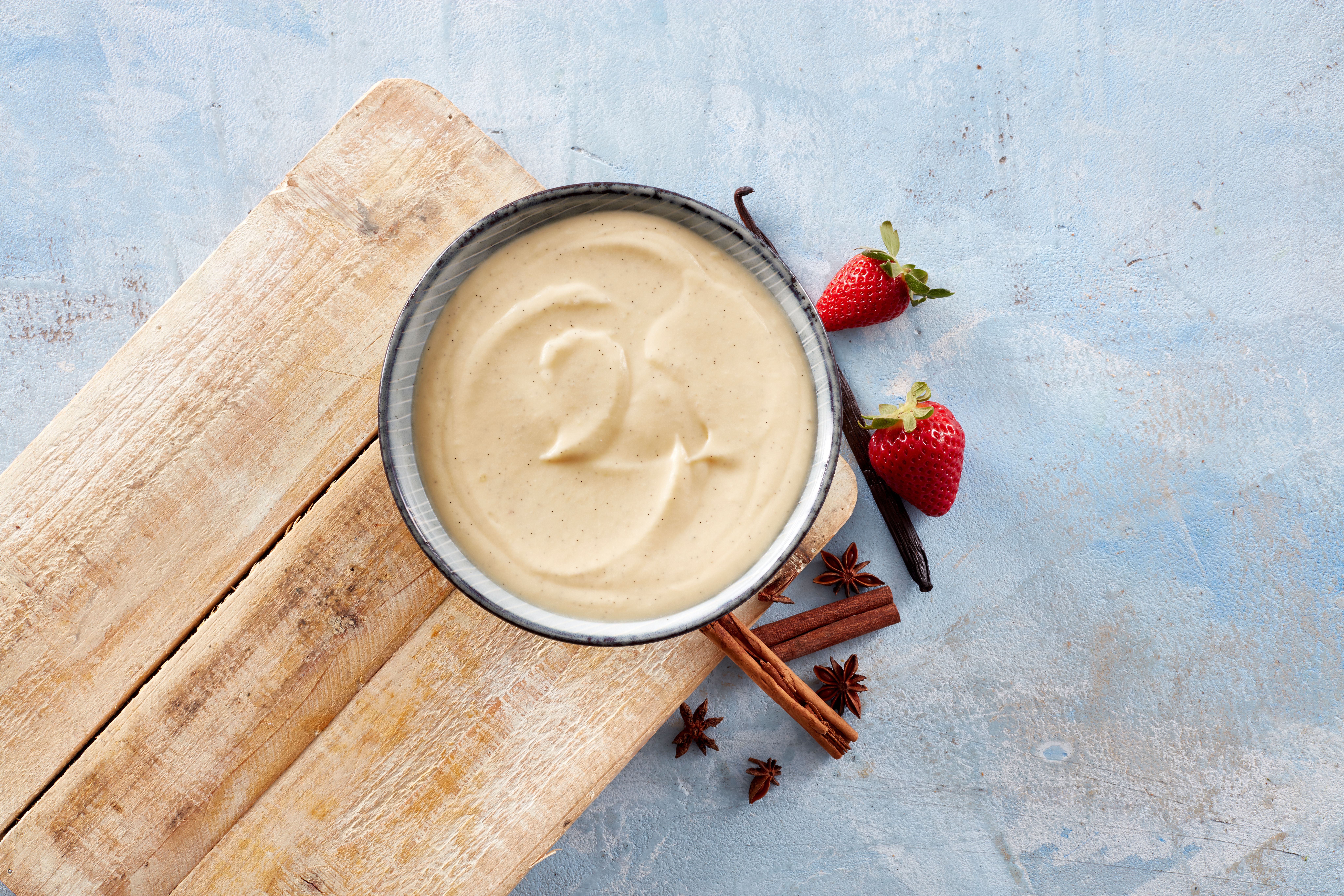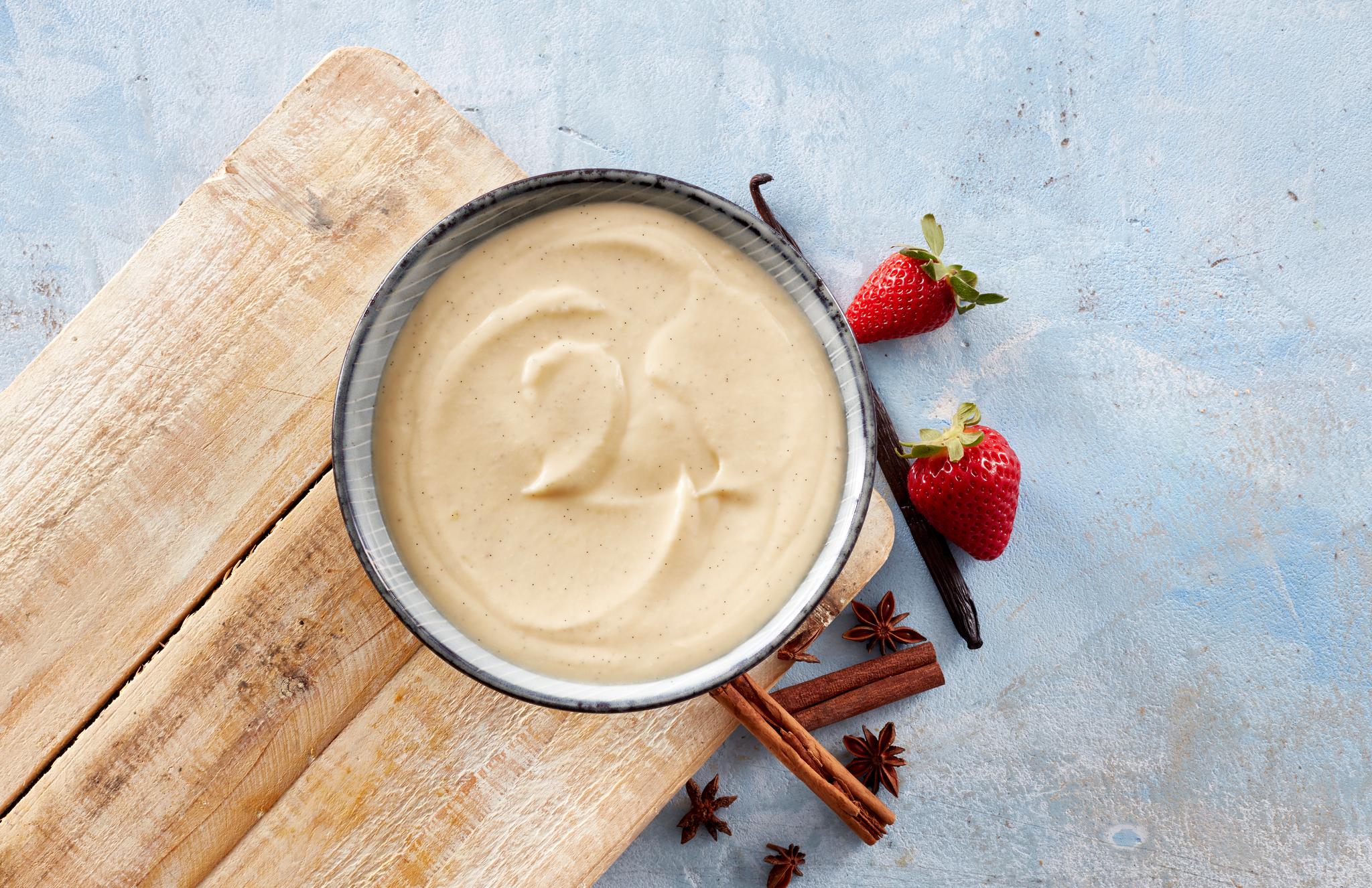 - Sil melken og hell melkeblandingen over eggedosisen under konstant pisking.