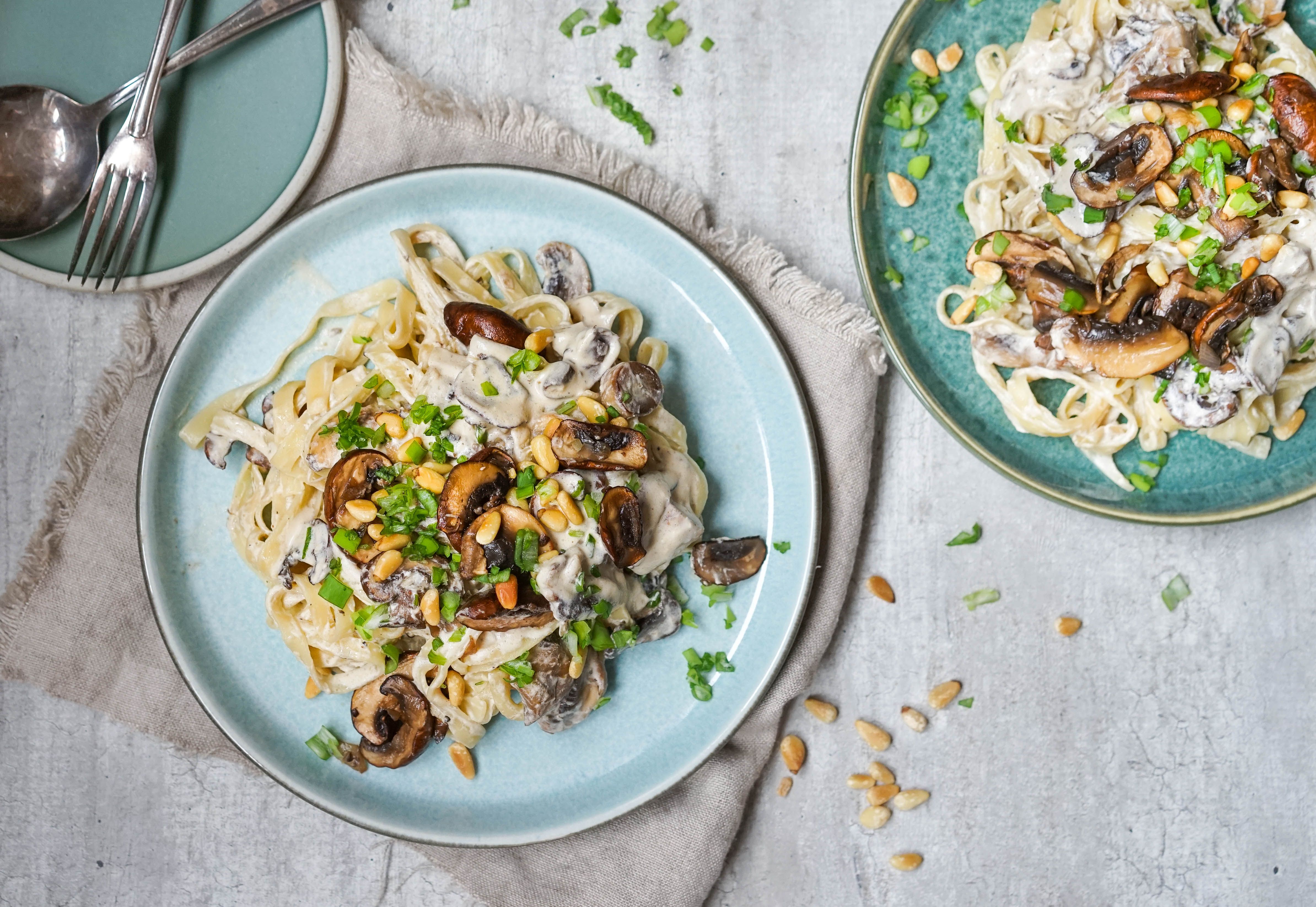 - Server sausen over pasta, gjerne sammen med pinjekjerner og friske urter på toppen.