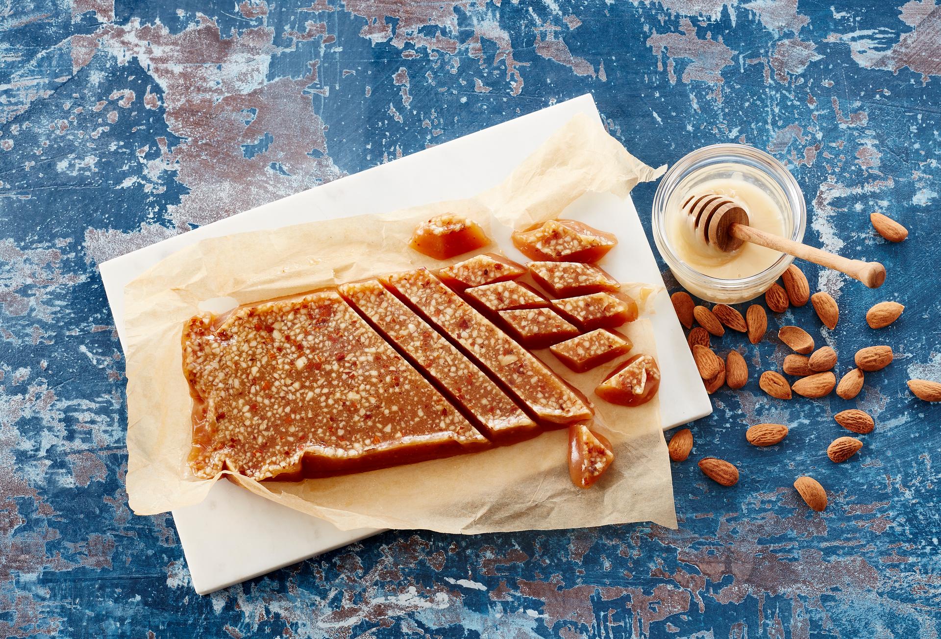 Fyldige karameller med en ny vri. Mandler og honning smaker nydelig i karameller.