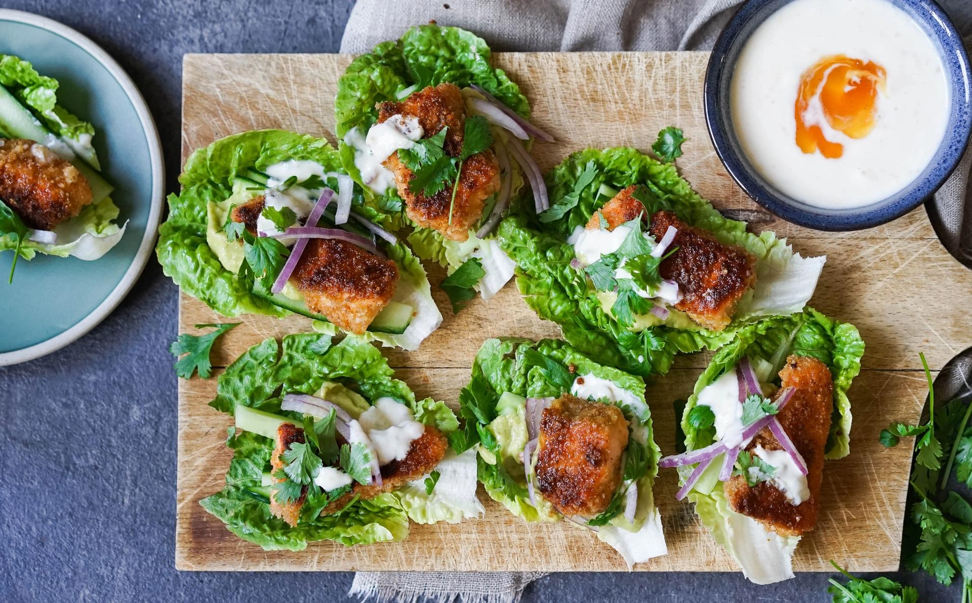 Bytt ut tortillalefsene med hjertesalat, og servér med en deilig yoghurtdressing med mangochutney.